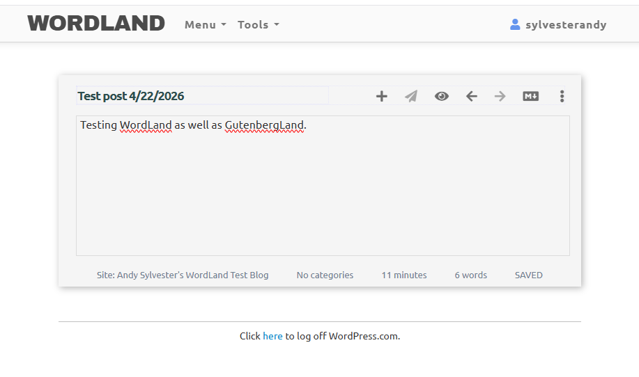 On April 12, 2026, Dave Winer announced a demonstration version of a second editor (GutenbergLand) integrated with the wpIdentity package that powers Dave’s WordLand editor for WordPress.